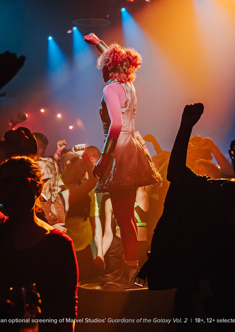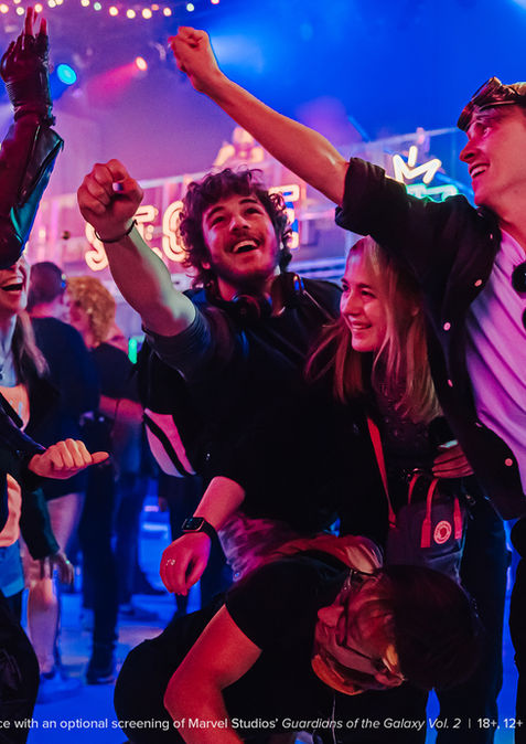 Our audience embarked on an interstellar extravaganza: immersing themselves in planet Contraxia's snowy splendour and dancing through the cosmic beats of Planet Nowhere. Participants joined the Guardians for galactic cabaret performances, traded trinkets for 'Units', karaoked with Yondu, and faced off against The Collector in an epic battle for the Universe before watching an enhanced screening of Guardians of the Galaxy Vol.2.